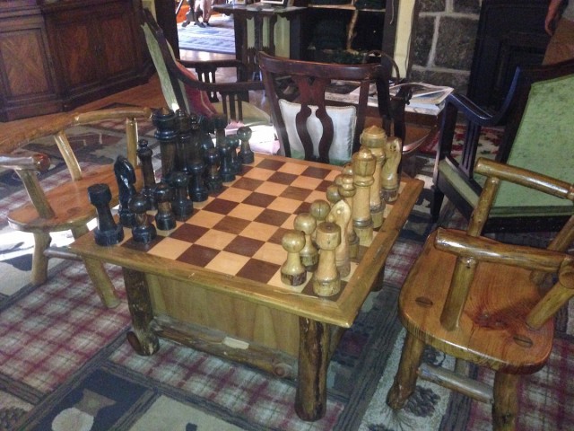 My weekend started Friday after work, hopping on the motorcycle, and heading to Lake Clear for a beer workshop and tasting at Hohmeyer’s Lake Clear Lodge. Built in 1886, this is one of the last original Adirondack lodges left, fully-equipped with every rustic piece of decor and charm you can imagine. This chess table in the lobby was my favorite piece!