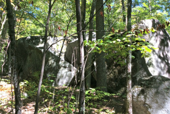 Photographers will appreciate the abundant clean granite backdrops of these features. Many hikes, such as St Regis Mountain, have larger examples, but they tend to be covered with vegetation, and only reached by an hour, or more, of trekking. The boulders are also set closely enough to allow for large shafts of sunlight in almost any kind of weather. This creates a bit of drama that is often missing from denser paths.