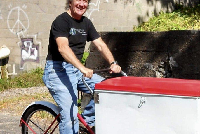 The best adults are those that never lose their child-like sense of wonder. John Dimon, owner of the retro bike shop Human Power Planet Earth, is one of those people, and he is such a wonderful asset to the community of Saranac Lake. Whenever I'm walking along Main Street, I always make a point to pop my head into his shop. Sometimes our exchanges are a quick hello, other times we talk for hours. No matter what, Dimon's upbeat energy always reinvigorates me and he usually inspires my next human powered adventure just by saying his famous tagline, "Have you used your human power today?" This is a man you want to get to know. That's why I jumped at the opportunity to interview and catch up with him over a cup of hot chocolate.