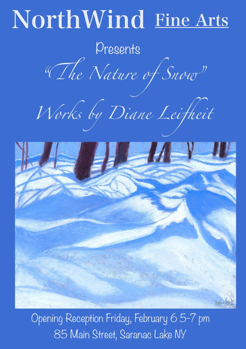 NorthWind Fine Arts presents The Nature of Snow, a February exhibit by gallery member Diane Leifheit. Join us for the opening reception on Friday, February 6, with light refreshments served.