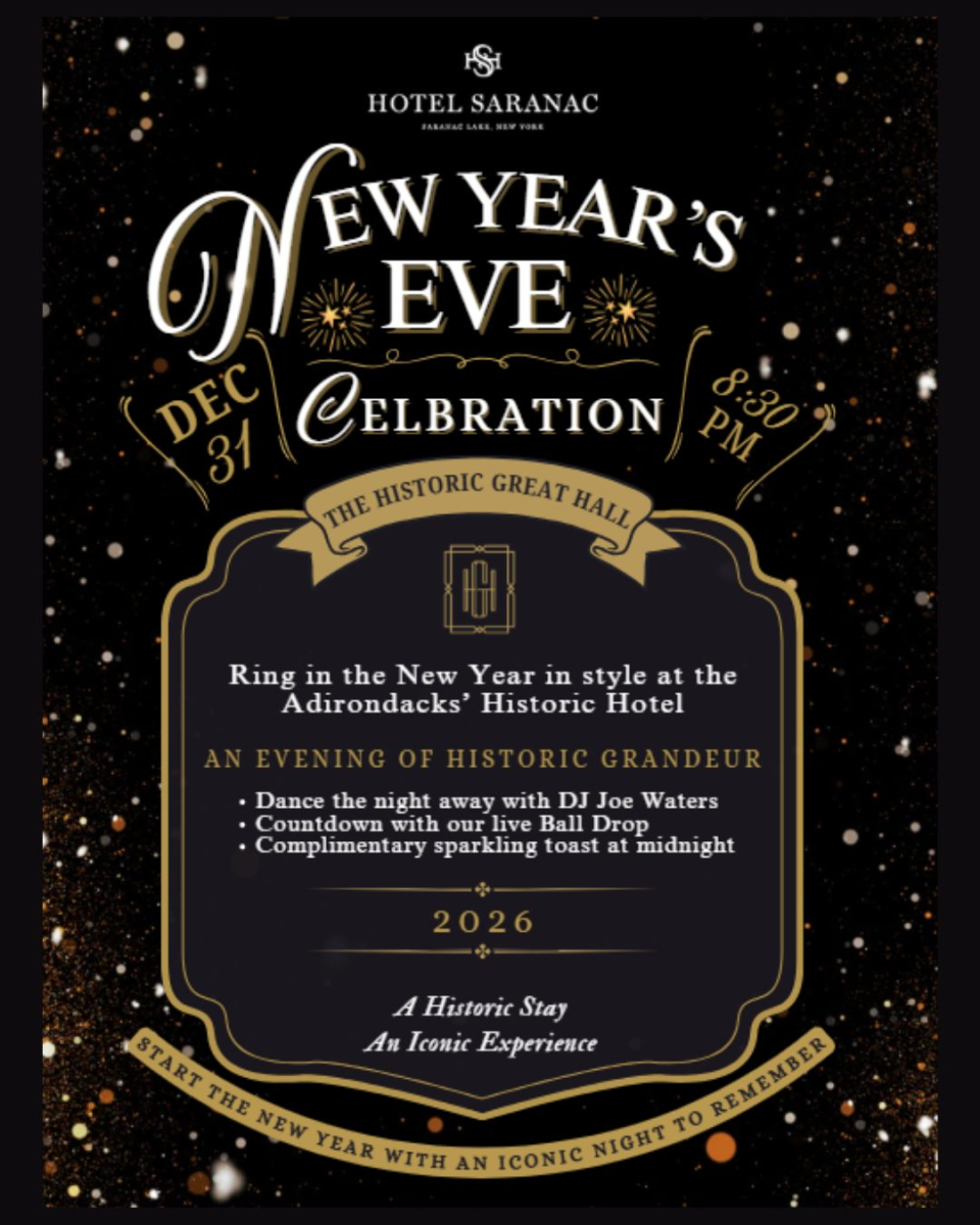 Celebrate the New Year in style at the Adirondacks’ iconic hotel and start 2026 with a night to remember.