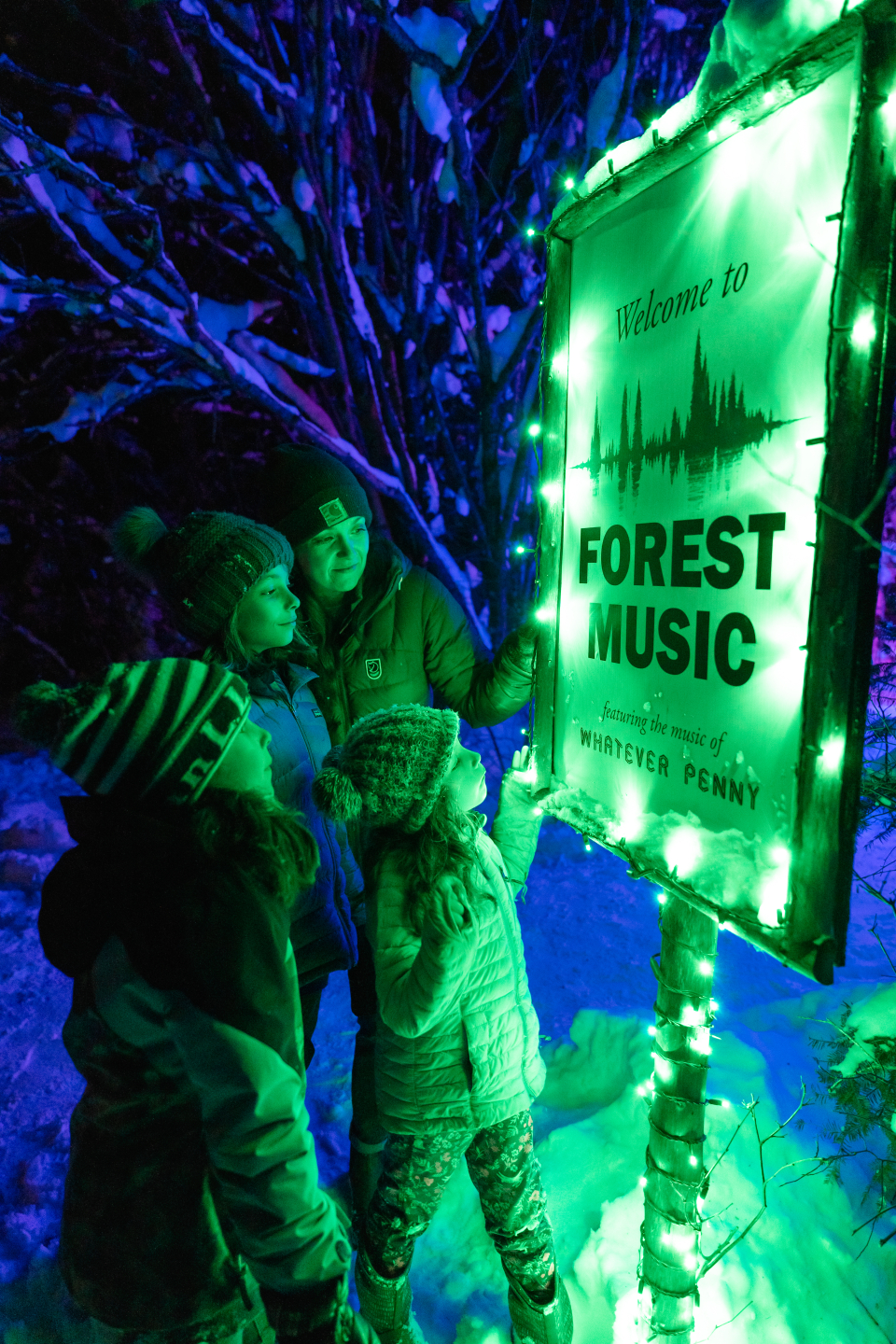 - Forest Music: Over 130 trees are wrapped in colorful lights that illuminate the forest and will transport you to a winter wonderland. A new musical composition from Whatever Penny creates a magical, three-dimensional, dreamy winter soundscape