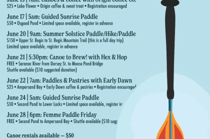 Paddles & Pastries with Guide ADK and Early Dawn Confections Join us for a paddle starting at Ampersand Bay, followed by a meet up at Early Dawn Confections for coffee and breakfast treats!
