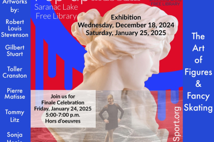 Art at the Library: Brushes to Blades of Steel by World Figure Sport. Exhibit Dates: December 11 - January 25. Event Finale: January 24 from 5-7pm. Location: Cantwell Room, Saranac Lake Free Library