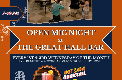 Please join us in the Hotel Saranac Great Hall Bar for Open Mic Night on the 1st and 3rd Wednesday of each month. Host is able to provide some instruments and accompaniments, signups start at 6:30 p.m., event will start at 7:00 p.m.!