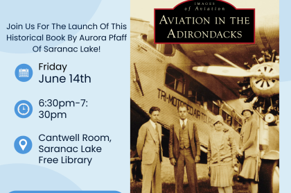 Book Launch: Aviation in the Adirondacks by Aurora Pfaff Date & Time: Friday, June 14, 2024, at 6:30 PM Location: The Cantwell Room, Saranac Lake Free Library Event Description: Join us for the exciting book launch of Aviation in the Adirondacks by...