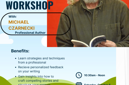Memoir Writing Workshop with Michael Czarnecki When: Saturday, October 5th at 10:30 AM Where: Saranac Lake Free Library Join Michael Czarnecki, a seasoned poet, writer, and publisher, for an engaging Memoir Writing Workshop. Learn how to transform...