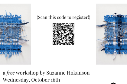 Join artist Suzanne Hokanson for a FREE three hour workshop, "Beyond Potholders," on Wednesday, October 16th, from 1pm to 4pm. Participants will explore the possibilities of using yarn, ribbons, and other materials instead of traditional loopers...