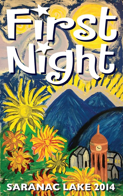 *At 5:45 on New Year’s Eve, meet at the front of the Harrietstown Hall to enjoy the opening festivities. Join the mayor of Saranac Lake when he declares the event’s kick-off. The new 2014 3’ x 15’ First Night banners will also be unfurled down the front of the Town Hall at this time. This year will mark the 6th year of the First Night Celebration in Saranac Lake. Each year, six area organizations or individuals create these festive and colorful banners to decorate the Town Hall.