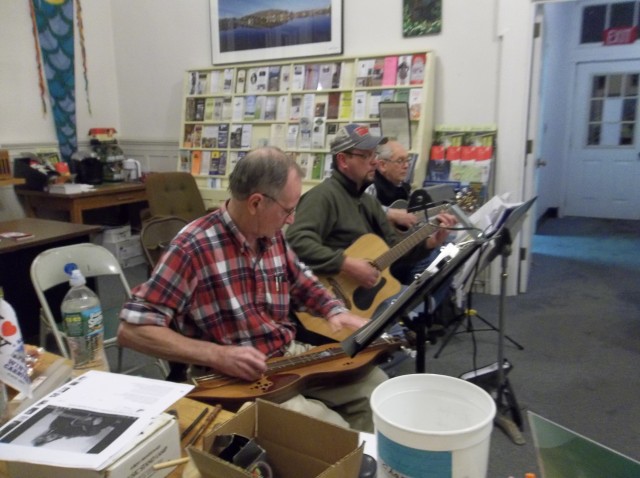 On Thursday nights as you pass the Saranac Lake Vistors Center office, you may notice a lot of cars in the parking lot and all the lights on and wonder what is going on. Most people would assume that it is something chamber related (maybe a board meeting or something) that is closed to the public, but that could not be farther from the truth. Each and every Thursday night (all year long), the Ceilidh Music Session meets. The Ceilidh Music Session is a group of men and occasionally women who come together to play their chosen instruments in an open jam session. An open jam session is a musical event where musicians are welcome to play in a non-rehearsed communal practice session. Allowing everyone to join in and show what can happen when people come together to create wonderful music.