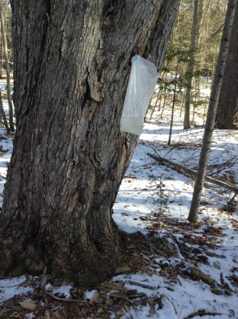 the latest wrinkle in sugar-tapping is the winebag to hold the sap